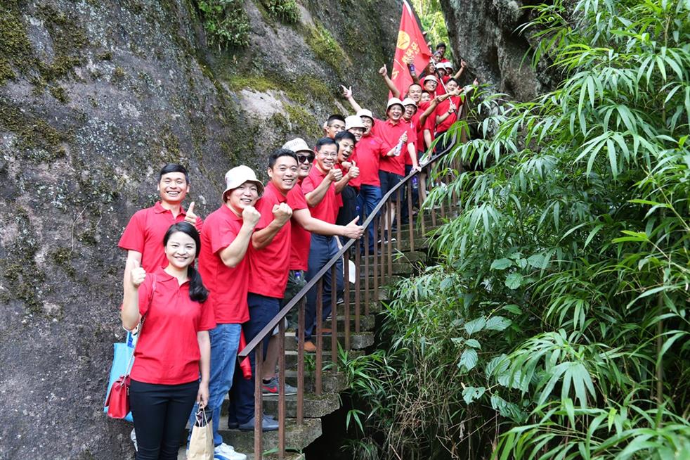 勇攀天游峰活动中,大家热情高涨,一起穿行在绿树掩映的山径中,且行且欣赏如画风景,勇攀陡峭石阶,大家互相鼓劲,相互加油,携手向着天游峰顶进发,充分展示出了广发体育官方网站登录,广发(中国)人敢于拼搏,“团结、务实、创新、坚韧”的企业精神。经过大家不懈的努力,当所有身着鲜艳的红色衣服的广发体育官方网站登录,广发(中国)人在天游峰顶的石碑旁齐声高喊“广发体育官方网站登录,广发(中国)必胜”时,激情洋溢的广发体育官方网站登录,广发(中国)人俨然成了武夷山顶红红火火的风景线。