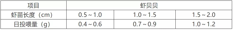 注:1、投喂量以每m3 水体10万尾苗计算。